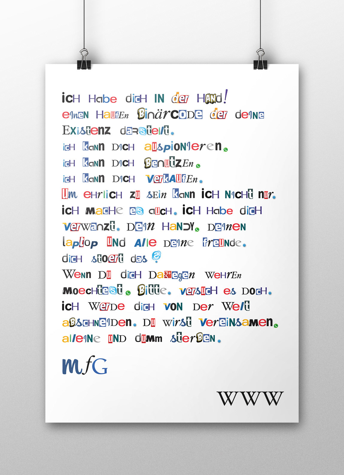 wir alle nutzen das internet und seine plattformen so selbstverständlich. ich habe mir gedanken über das internet und unseren umgang damit gemacht. herausgekommen sind 3 anti-ads, die zum nachdenken anregen sollen.